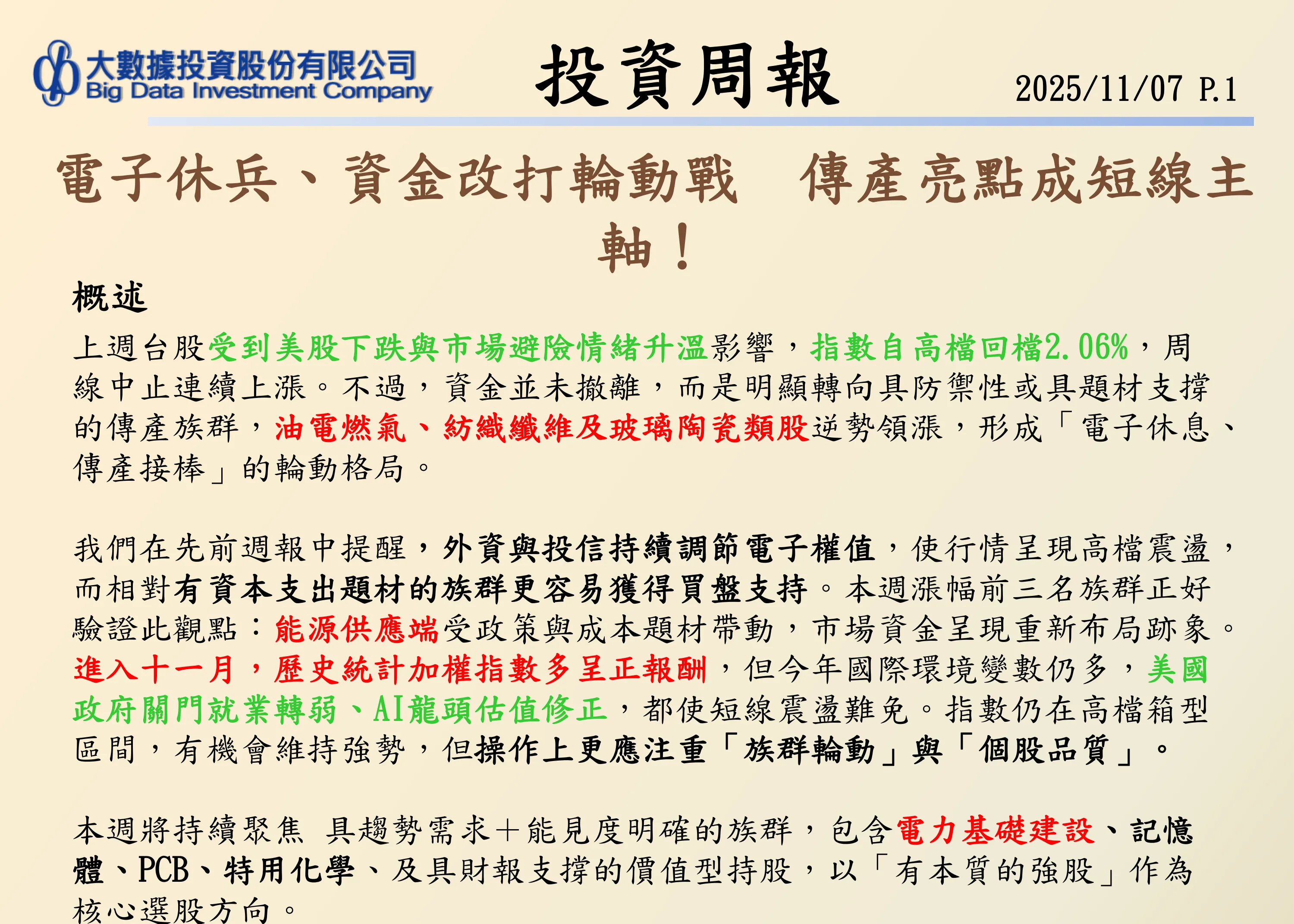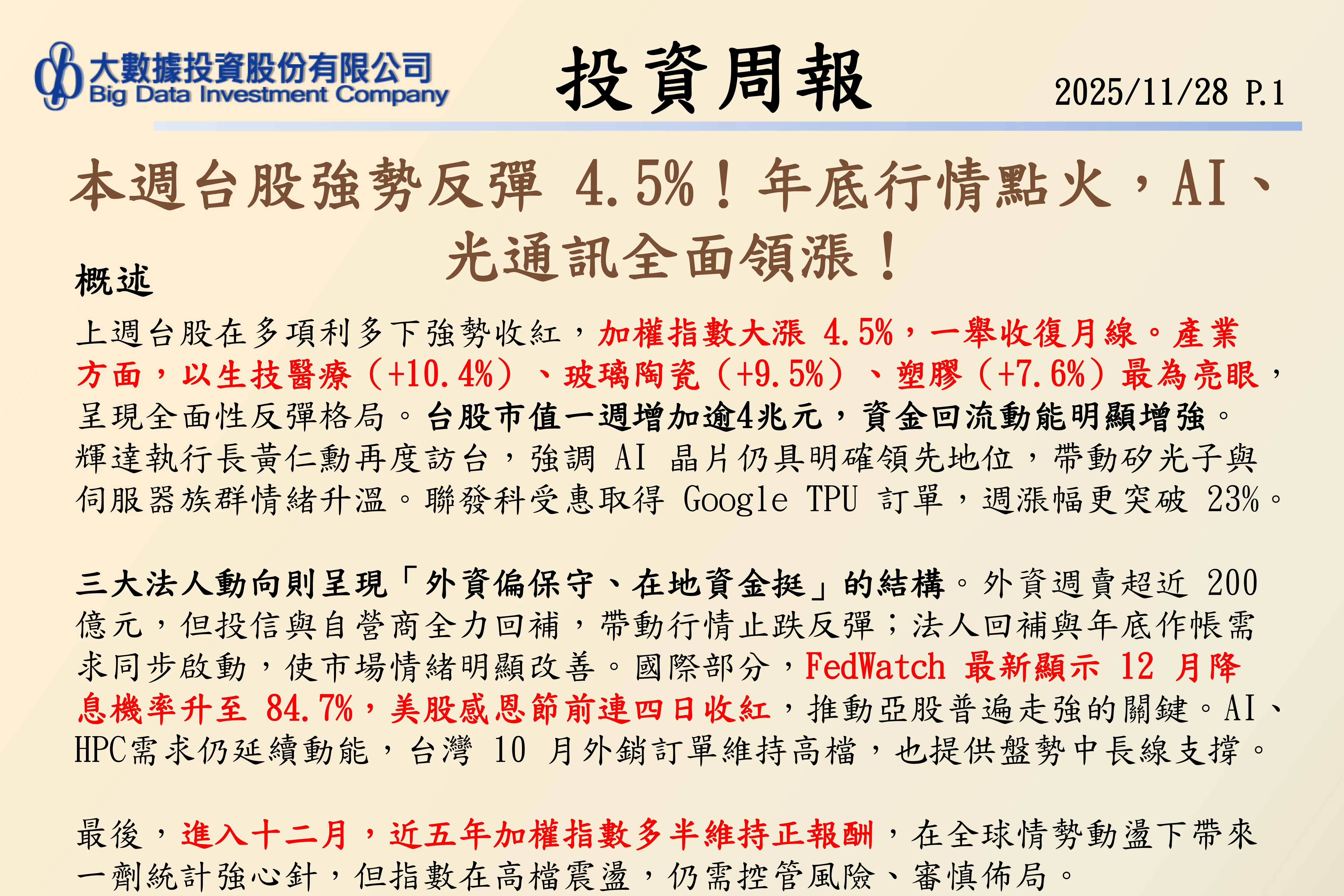 大數據投資股份有限公司成立於2015年,秉持著「誠信經營,穩健投資」的核心理念,已成為投資數據分析的領航者之一