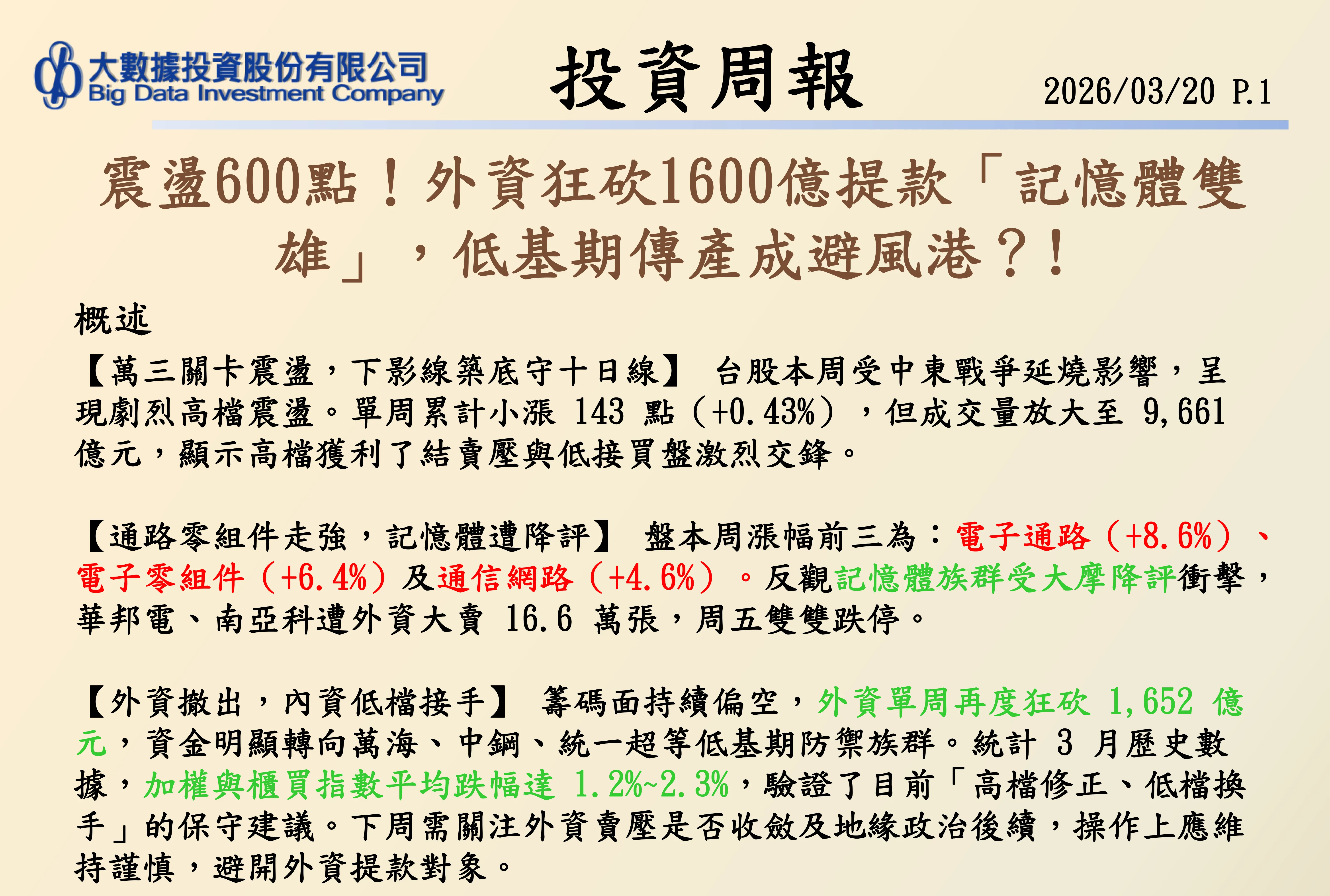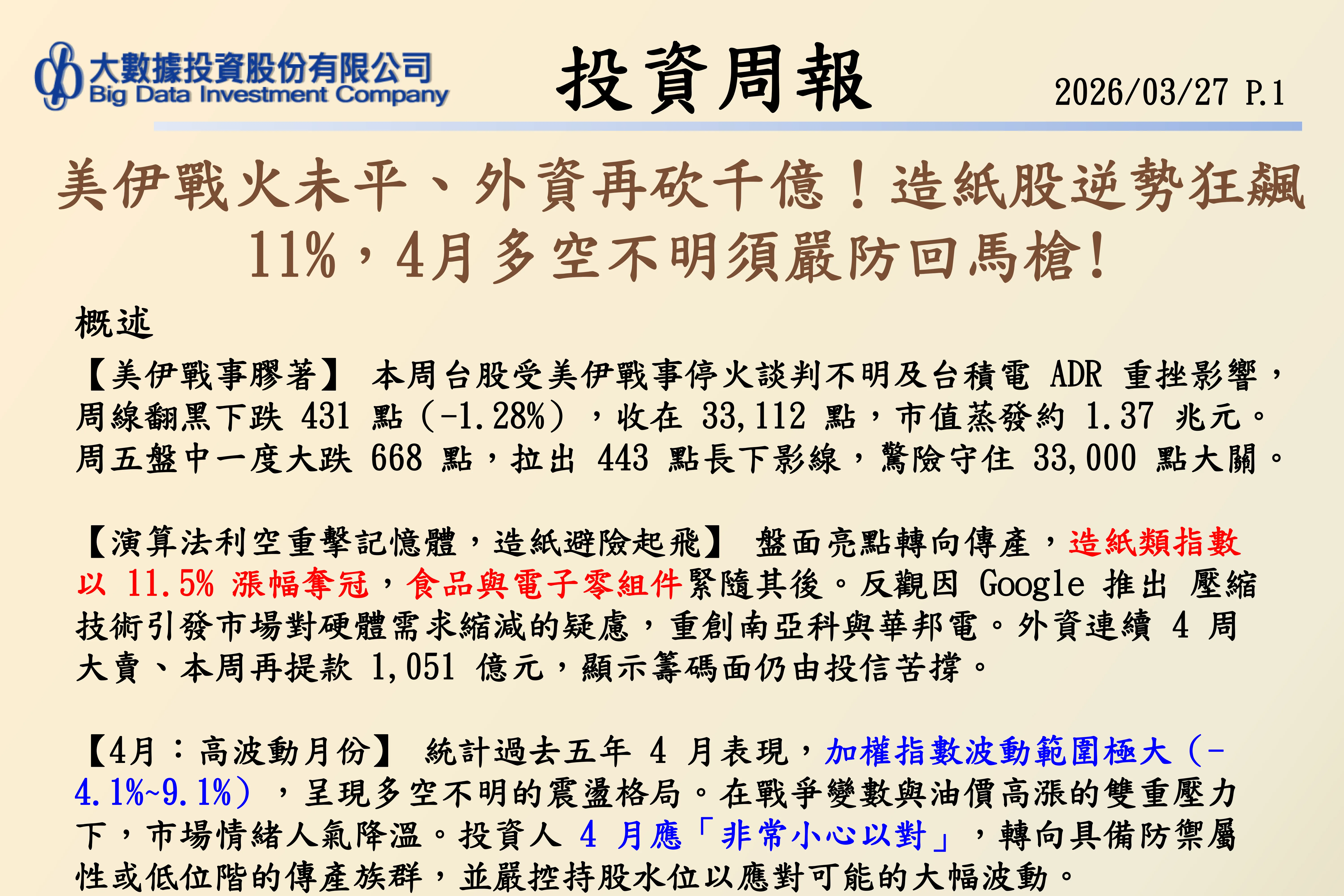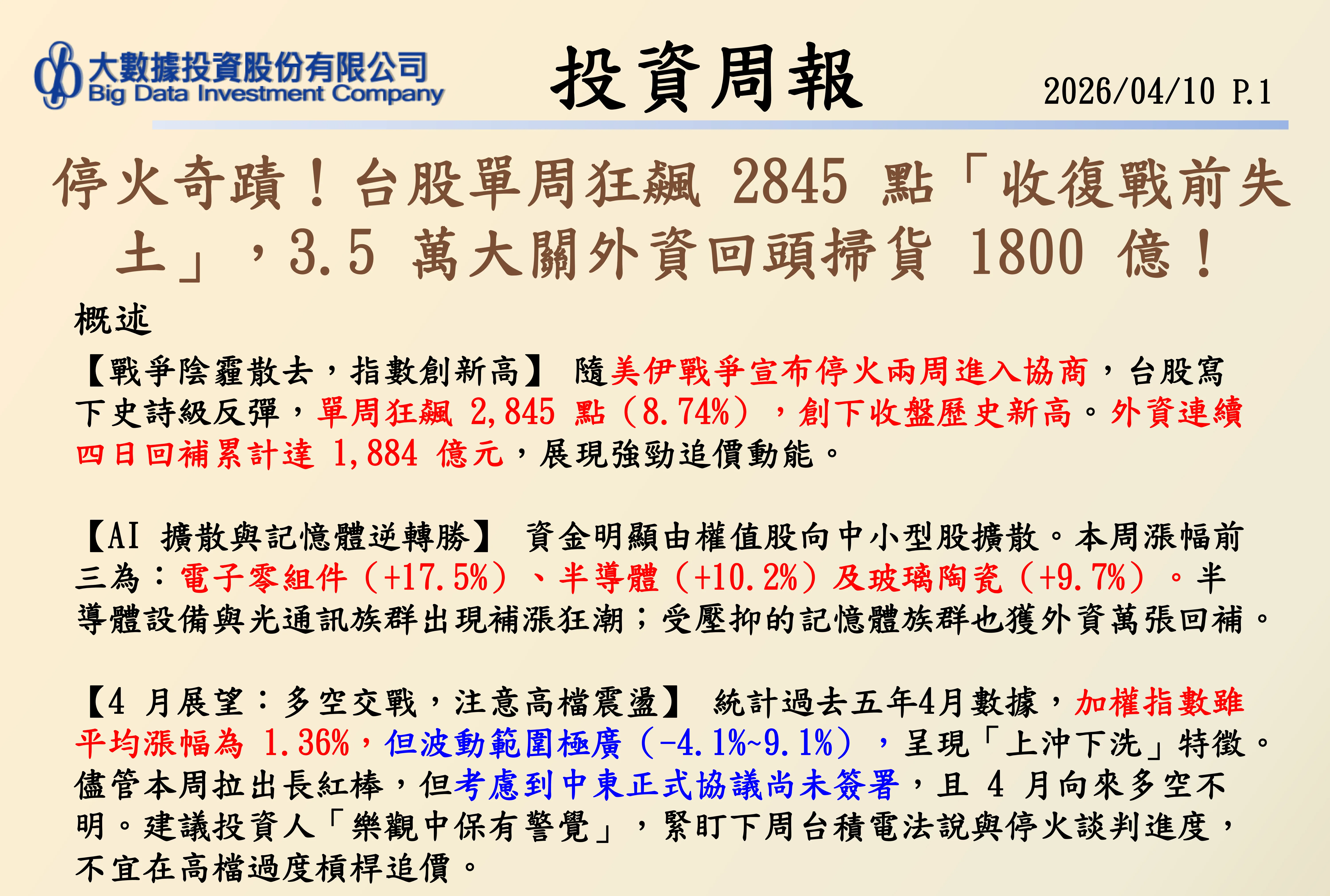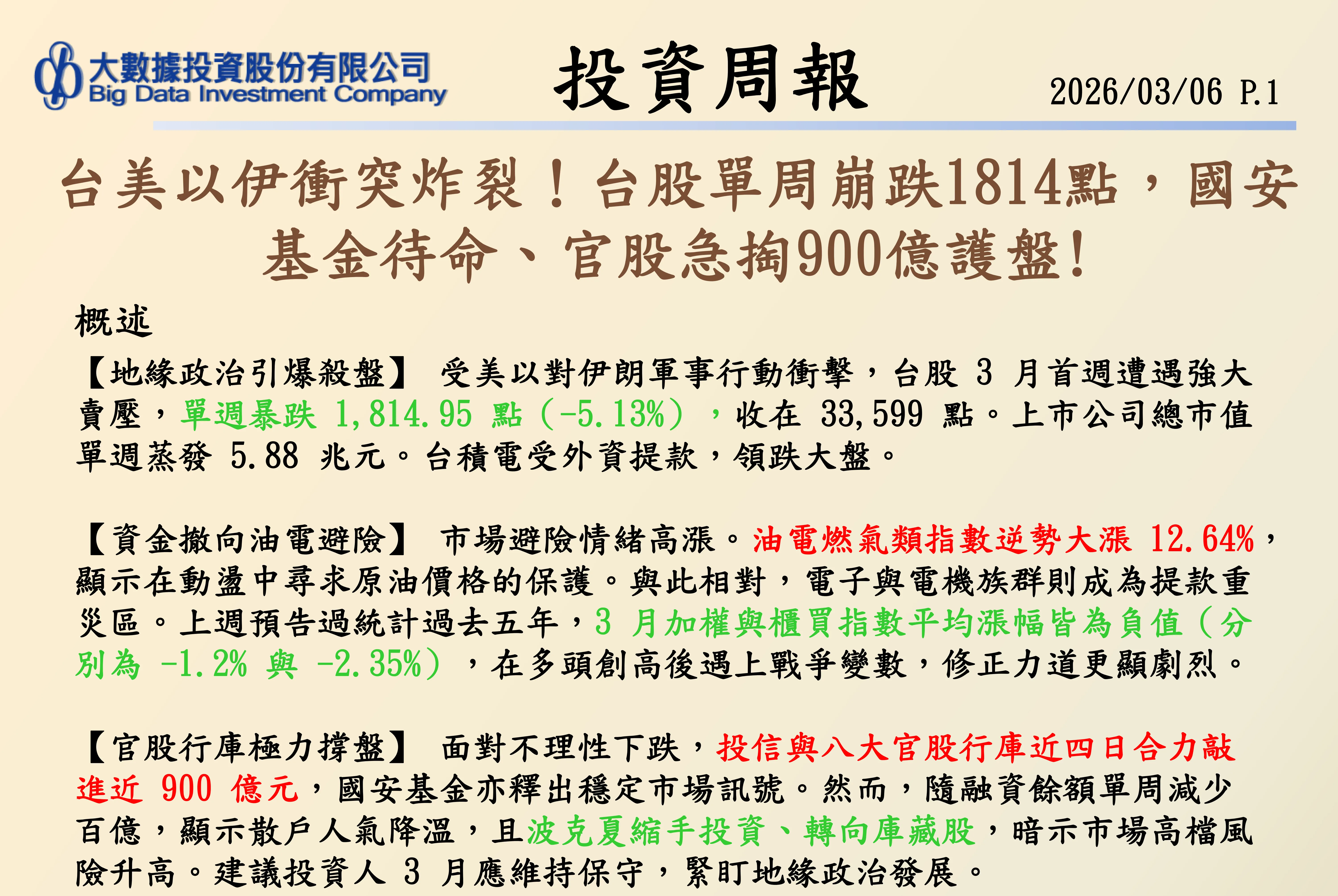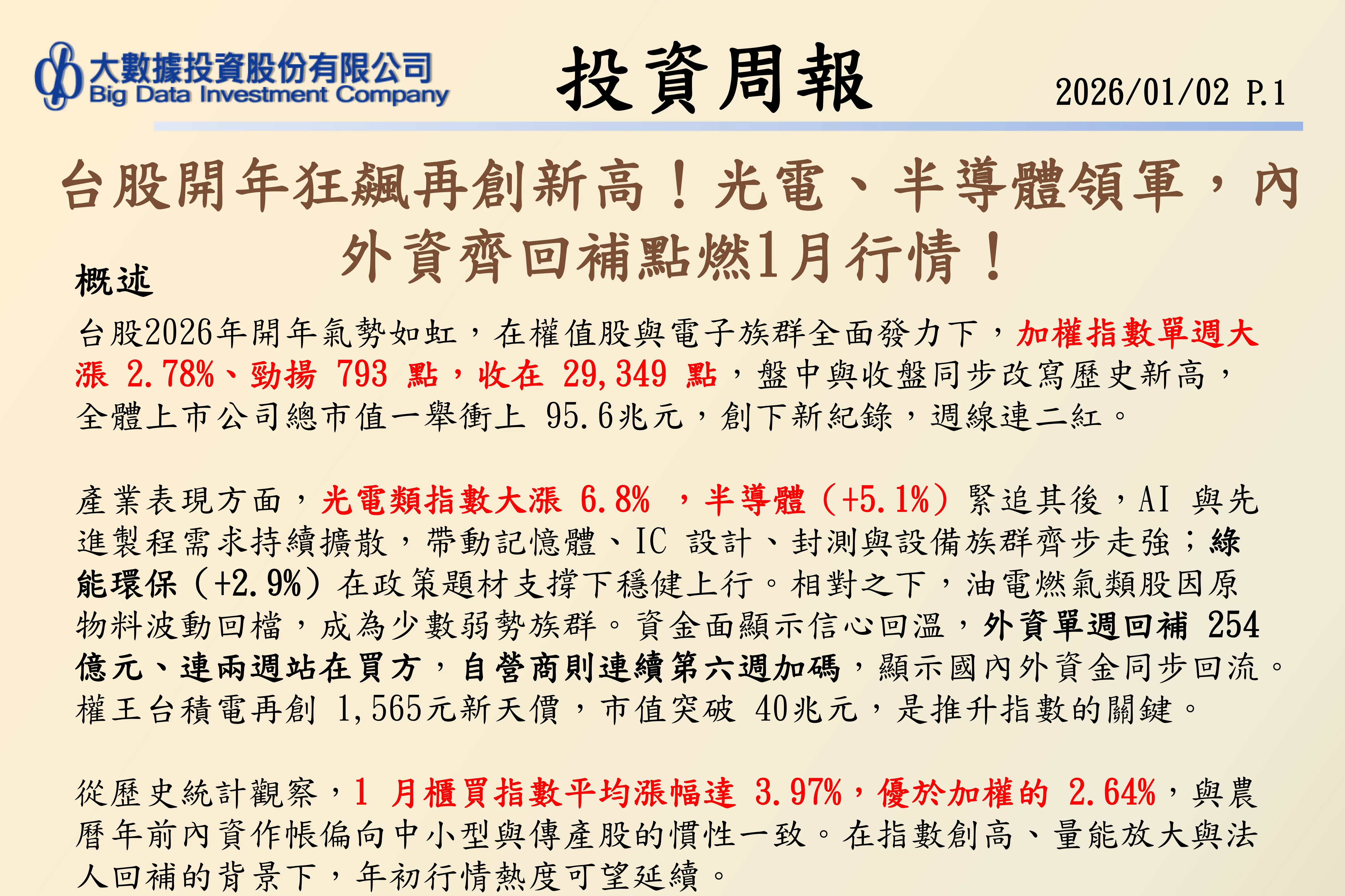 大數據投資股份有限公司成立於2015年,秉持著「誠信經營,穩健投資」的核心理念,已成為投資數據分析的領航者之一
