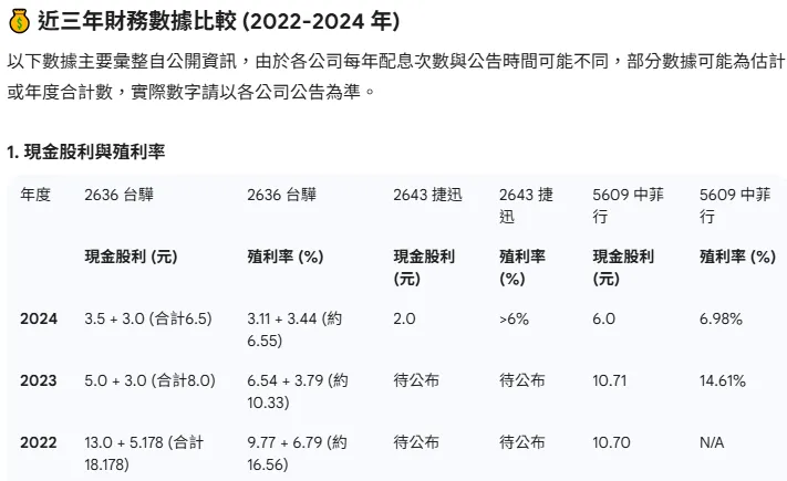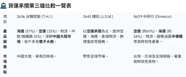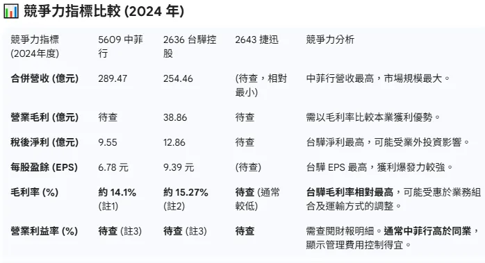 『比較2636台驊、2643捷迅、5609中菲行這三間公司的