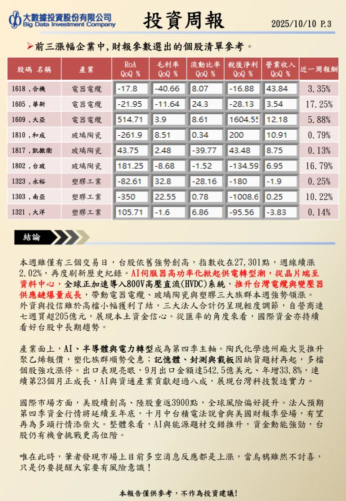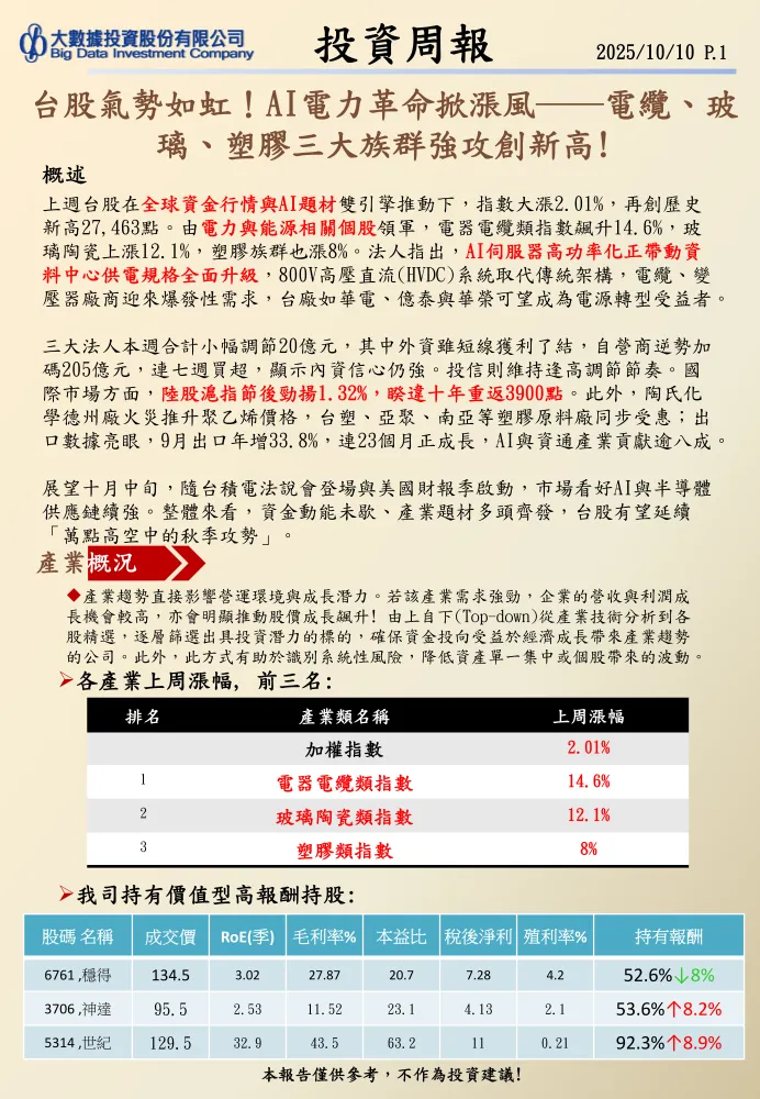 上週台股市場呈現分化走勢,生技醫療類股以6.5%的漲幅拔得頭籌,半導體類股和其他電子類分別上漲2.3%和1.2%,展現相對抗跌的態勢。然而,航運類股本週轉弱,投資者需謹慎留意。塑膠類指數更是連續兩周進入跌幅榜前三,顯示市場壓力持續。