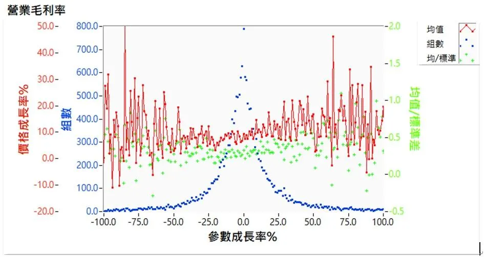 若財報參數在這個範圍外,可能就成非線性(散狀不容易畫成一條線)的發散,我們也就認為此時財報參數處於一個(不合理的)無效範圍。